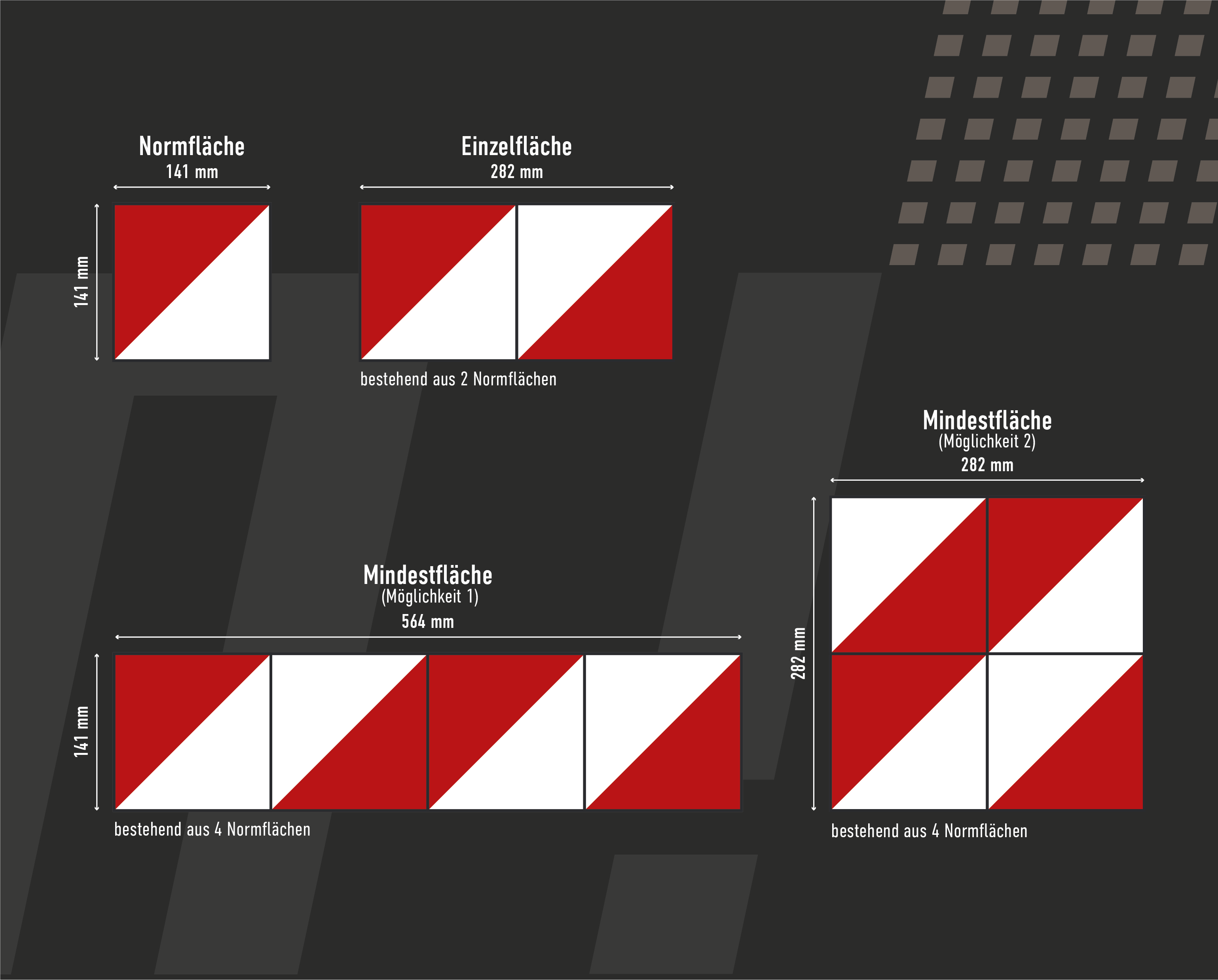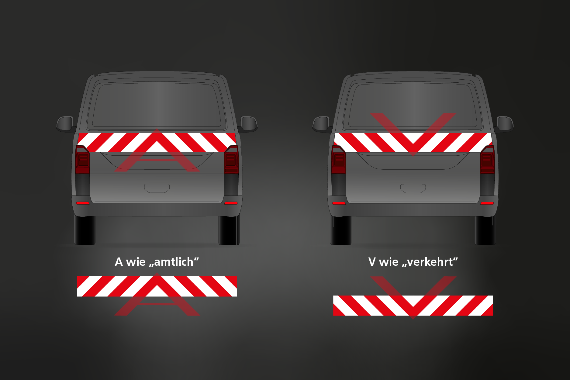 Fahrzeuge mit Sonderrechten nach §35 Abs. 6 StVO wie zum Beispiel: Kommunalfahrzeuge, Müllabfuhr, Straßenreinigung, Straßenbau, Winterdienst müssen mit rot-weißen Warnmarkierungen ausgestattet sein. Auch Anbaugeräte und Aufbauten zählen dazu.
